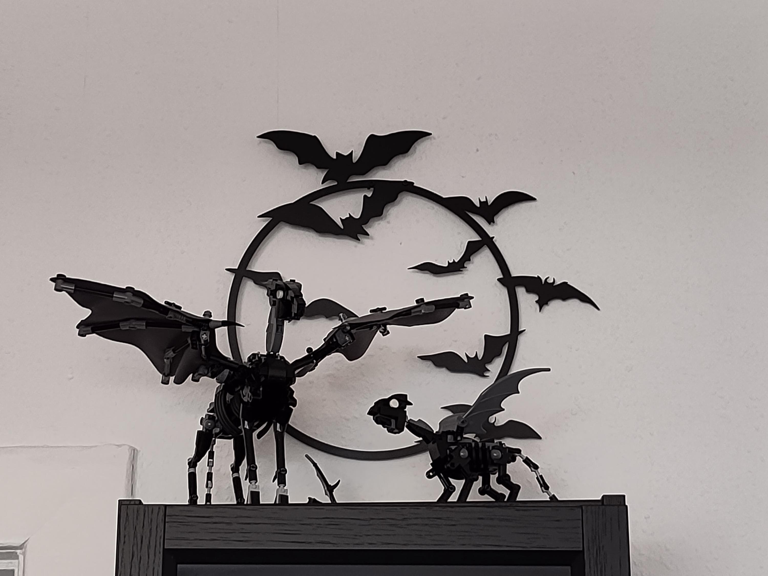 🔸Design: Intricate bat silhouettes encircling a full moon, perfect for gothic or Halloween-themed decor.