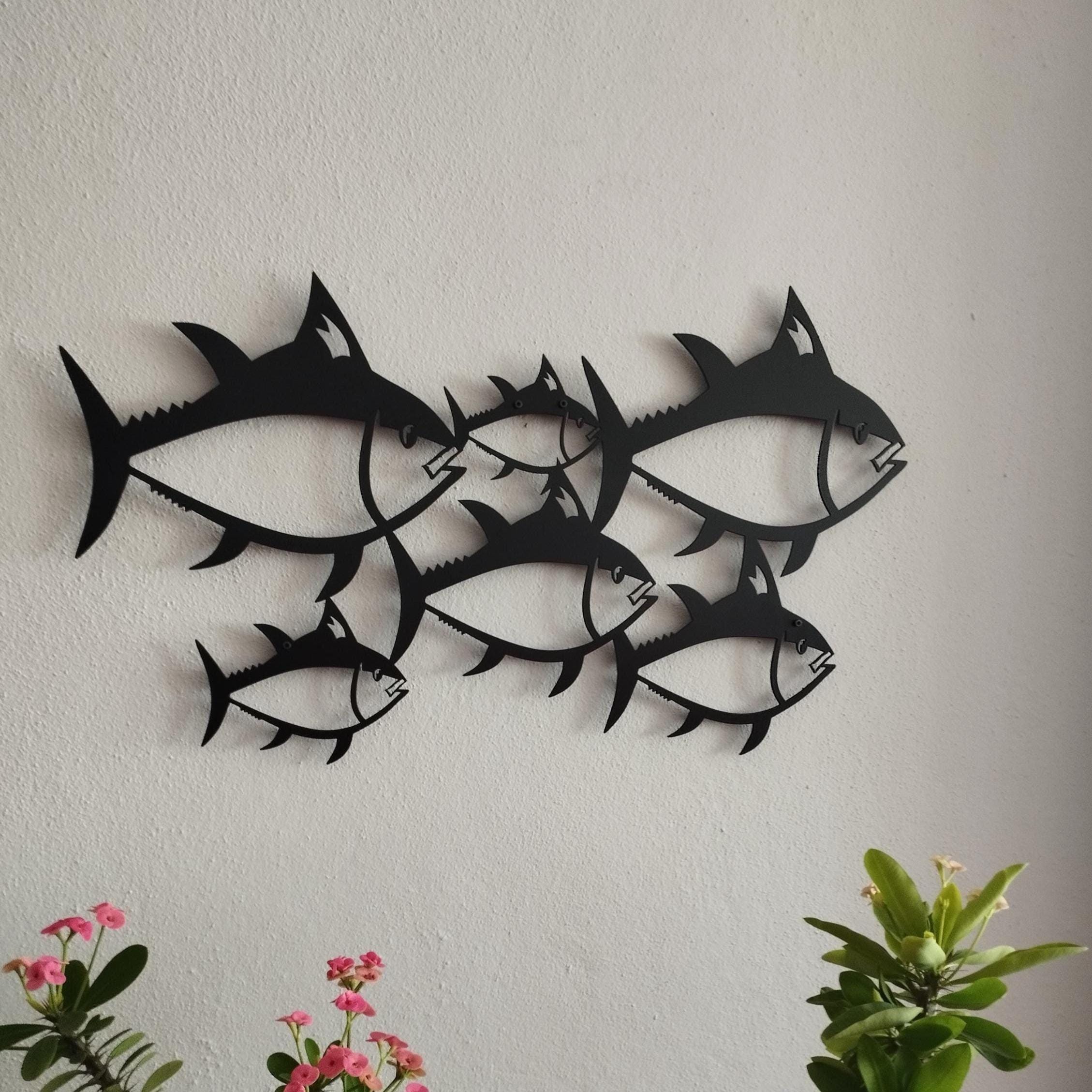 🔸 Bring calm coastal movement to your space with this School of Fish metal wall art. Featuring sleek fish silhouettes swimming in flowing formation, this handcrafted metal decor is perfect for beach houses, coastal homes, bathrooms, nautical interiors, and gifts for ocean lovers.