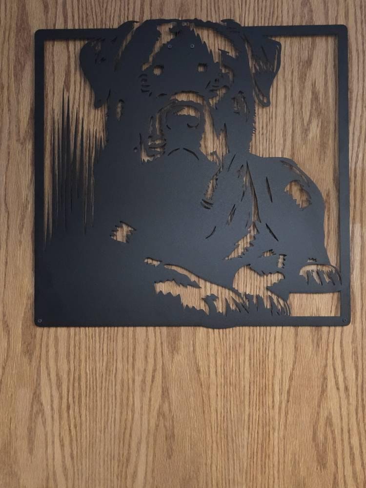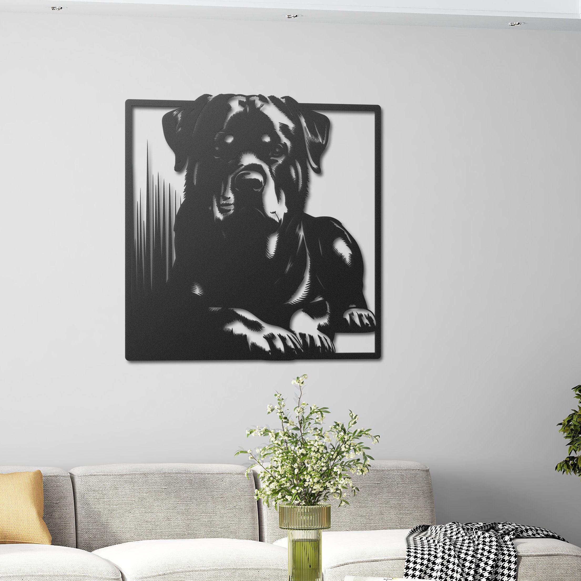This stunning Rottweiler metal wall art is the perfect addition for dog lovers and Rottweiler enthusiasts. Crafted with precision, it captures the strength, loyalty, and noble presence of this beloved breed. Whether displayed in a living room, office, or entryway, this unique piece adds character and charm to any space. Made from high-quality metal, it is durable, elegant, and designed to stand the test of time. A perfect gift for Rottweiler owners or anyone who appreciates bold and powerful decor.