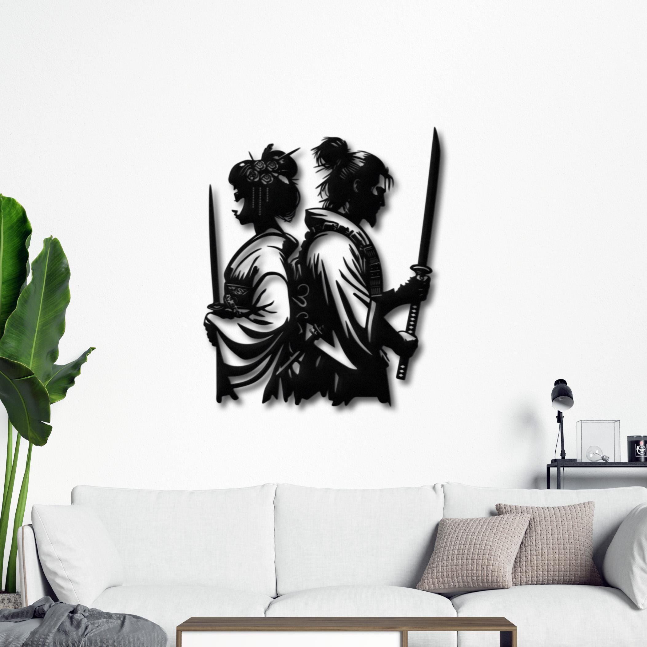 Elevate your living space with our Geisha&Samurai metal wall art, showcasing the profound Japanese concept of finding one's purpose in life. Expertly crafted from high-quality metal, this piece features elegant kanji calligraphy, adding a touch of modern Japanese culture to any room