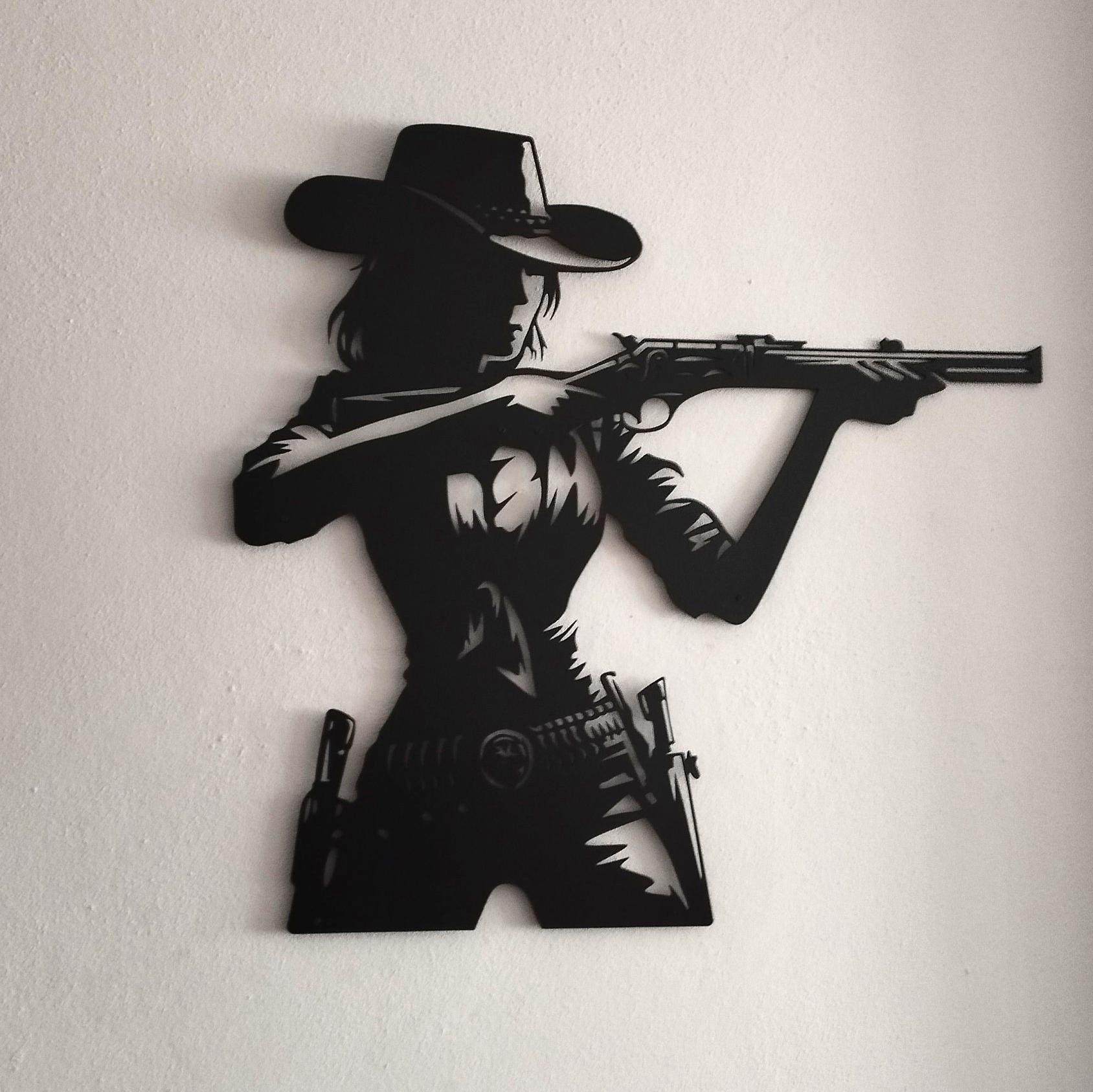 🔸Celebrate bold western spirit with this Cowgirl with Rifle metal wall art. Featuring a strong cowgirl silhouette in action, this handcrafted metal wall decor adds rustic character to ranch homes, western-style interiors, cabins, and statement wall displays while making a unique gift for cowgirl and country decor lovers.