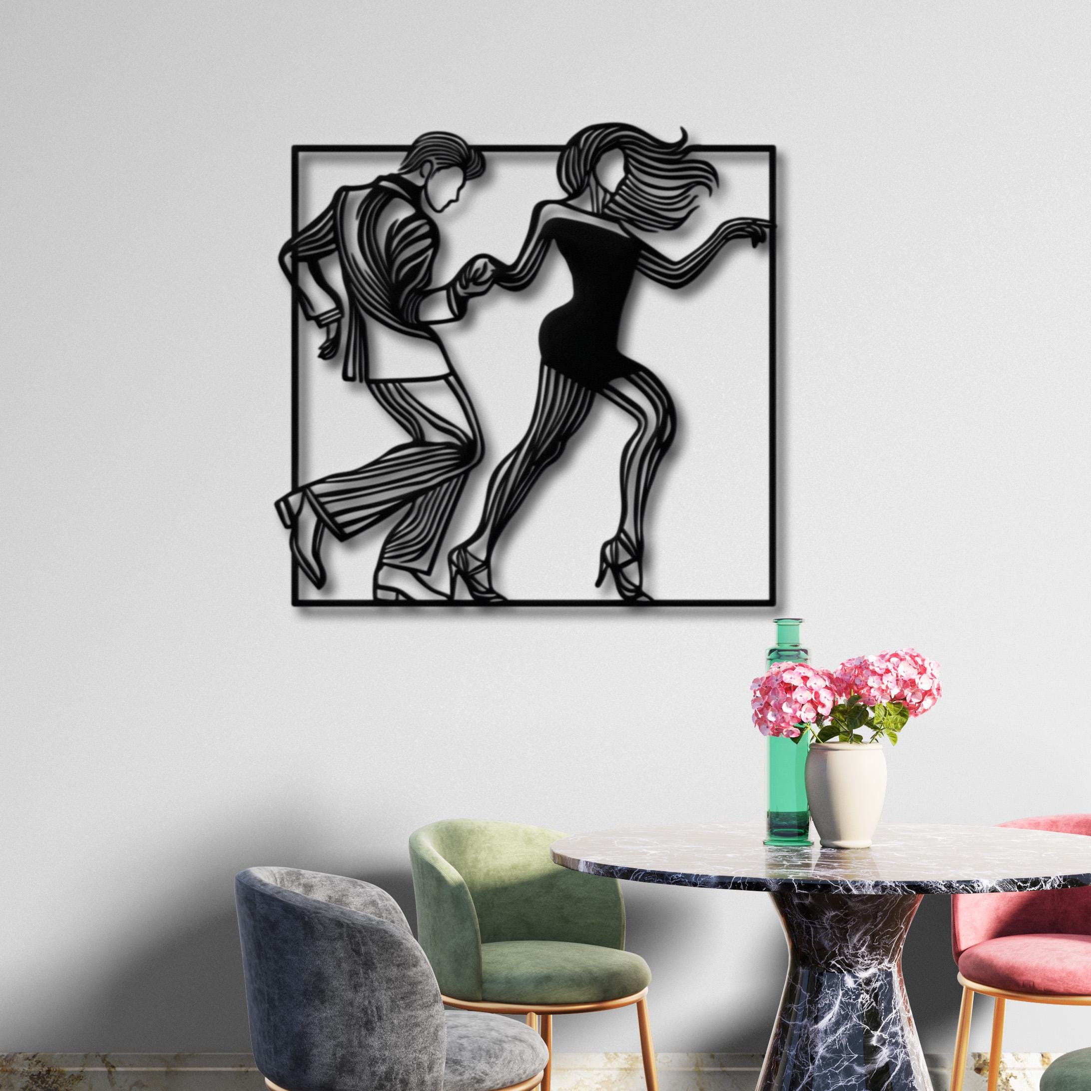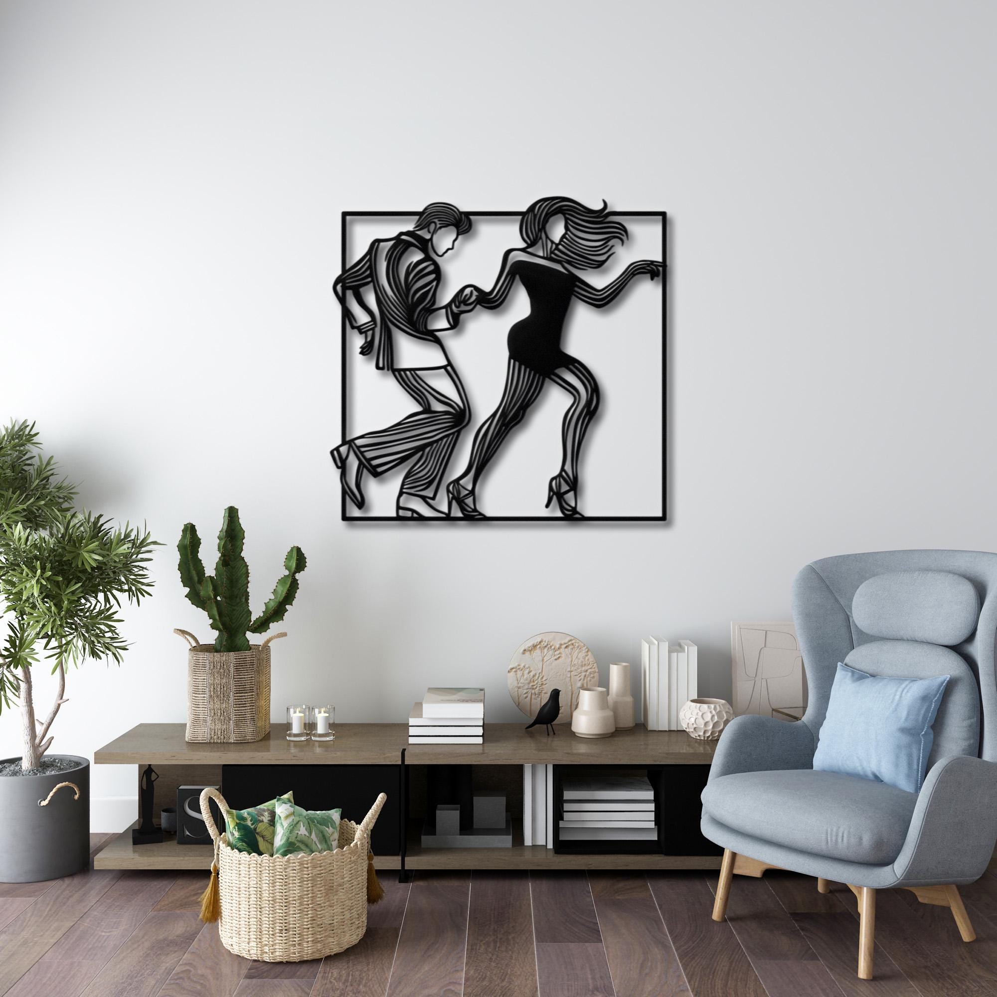 Add a touch of elegance and movement to your walls with this beautifully designed metal wall art. Featuring a couple dancing in a bar, this piece combines minimalism and charm, making it perfect for modern homes, living rooms, bars, or dance studios.