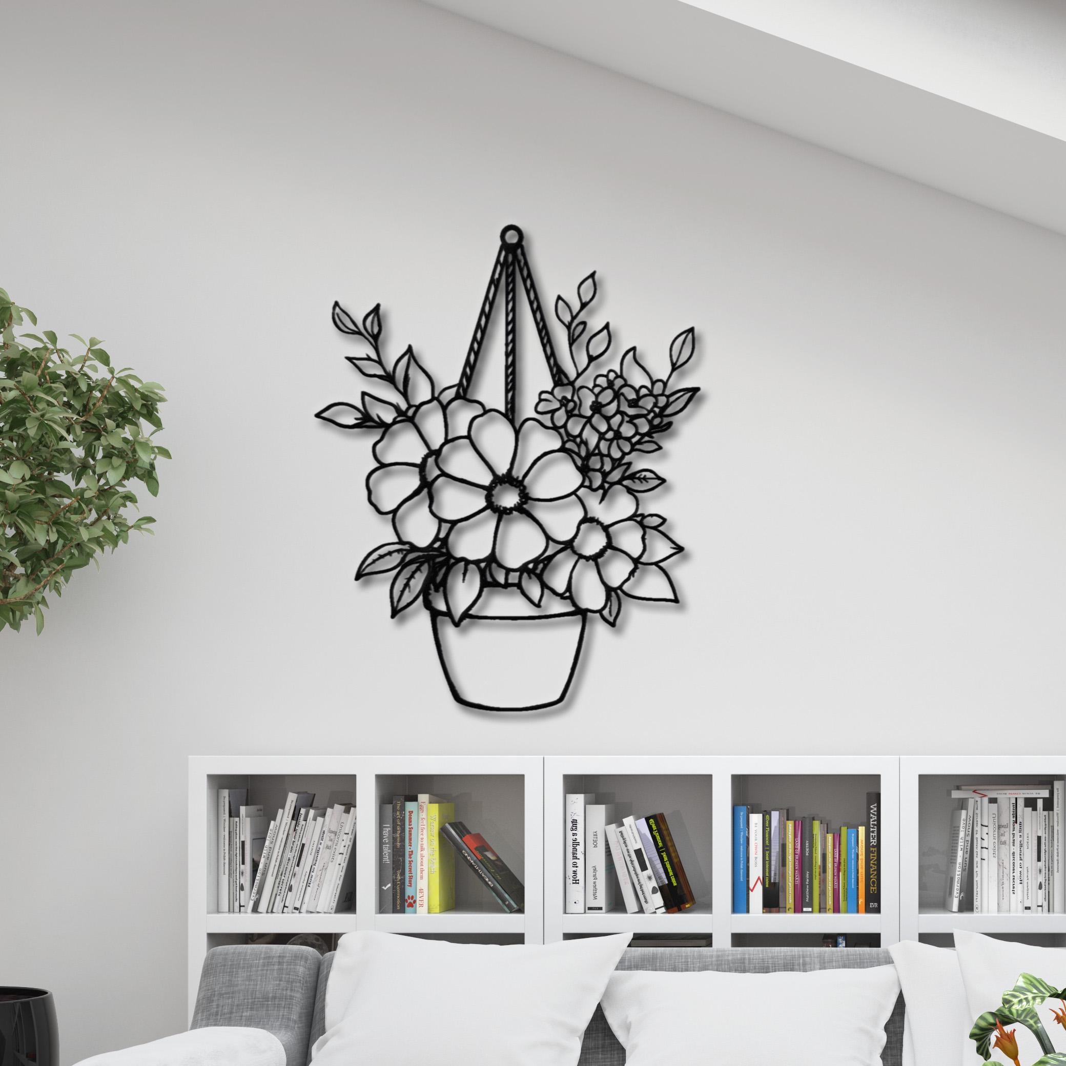 Bring the tranquility of nature indoors with this minimalist Flower in a Pot Metal Wall Art. Designed with clean, modern lines, this elegant silhouette captures the gentle beauty of a blooming plant, perfect for adding a subtle botanical accent to any space. The timeless black finish and durable steel construction make it a sophisticated, low-maintenance statement piece. Itโs an ideal choice for modern homes, minimalist decor, and a unique, thoughtful gift for plant lovers.
