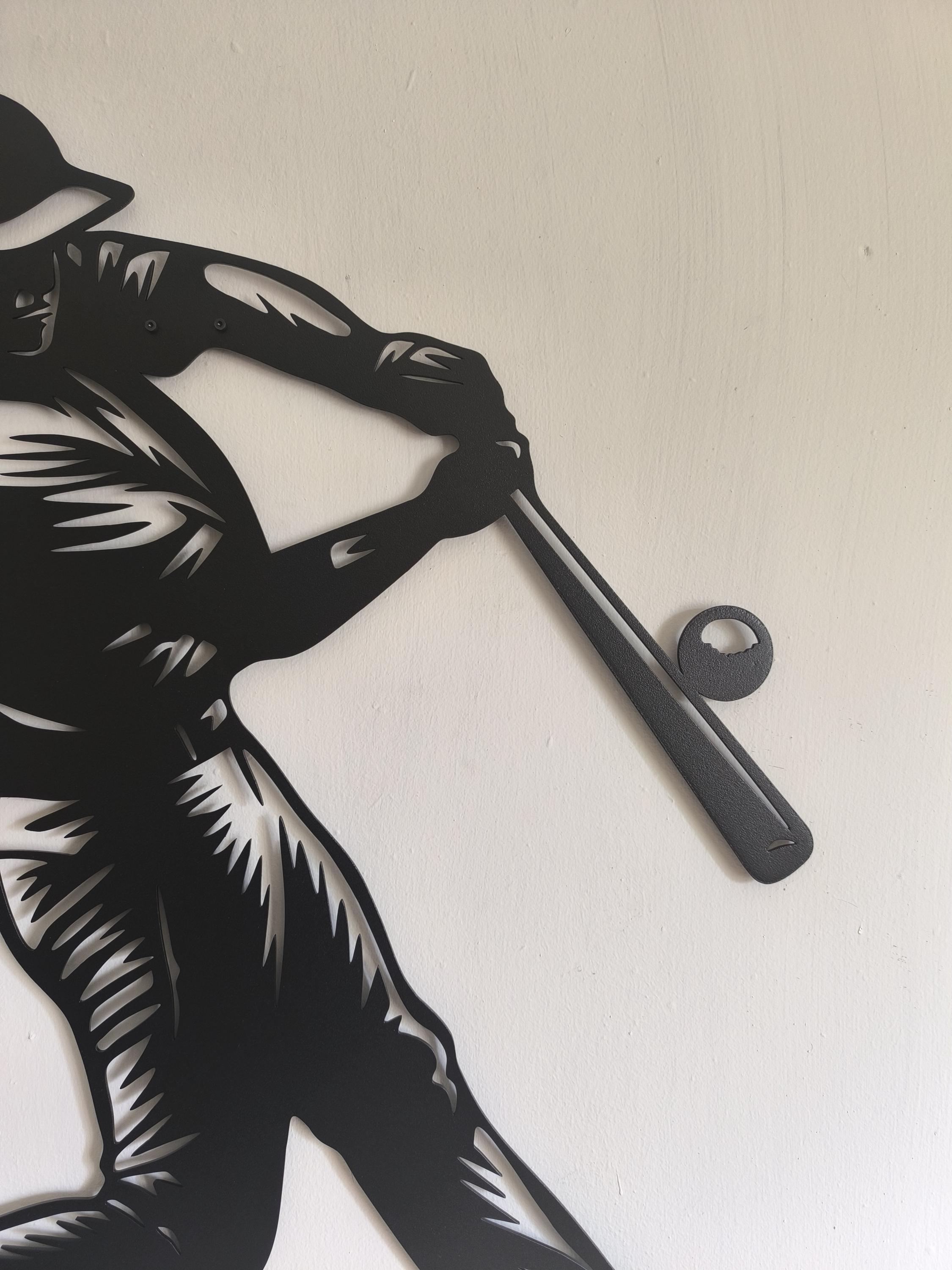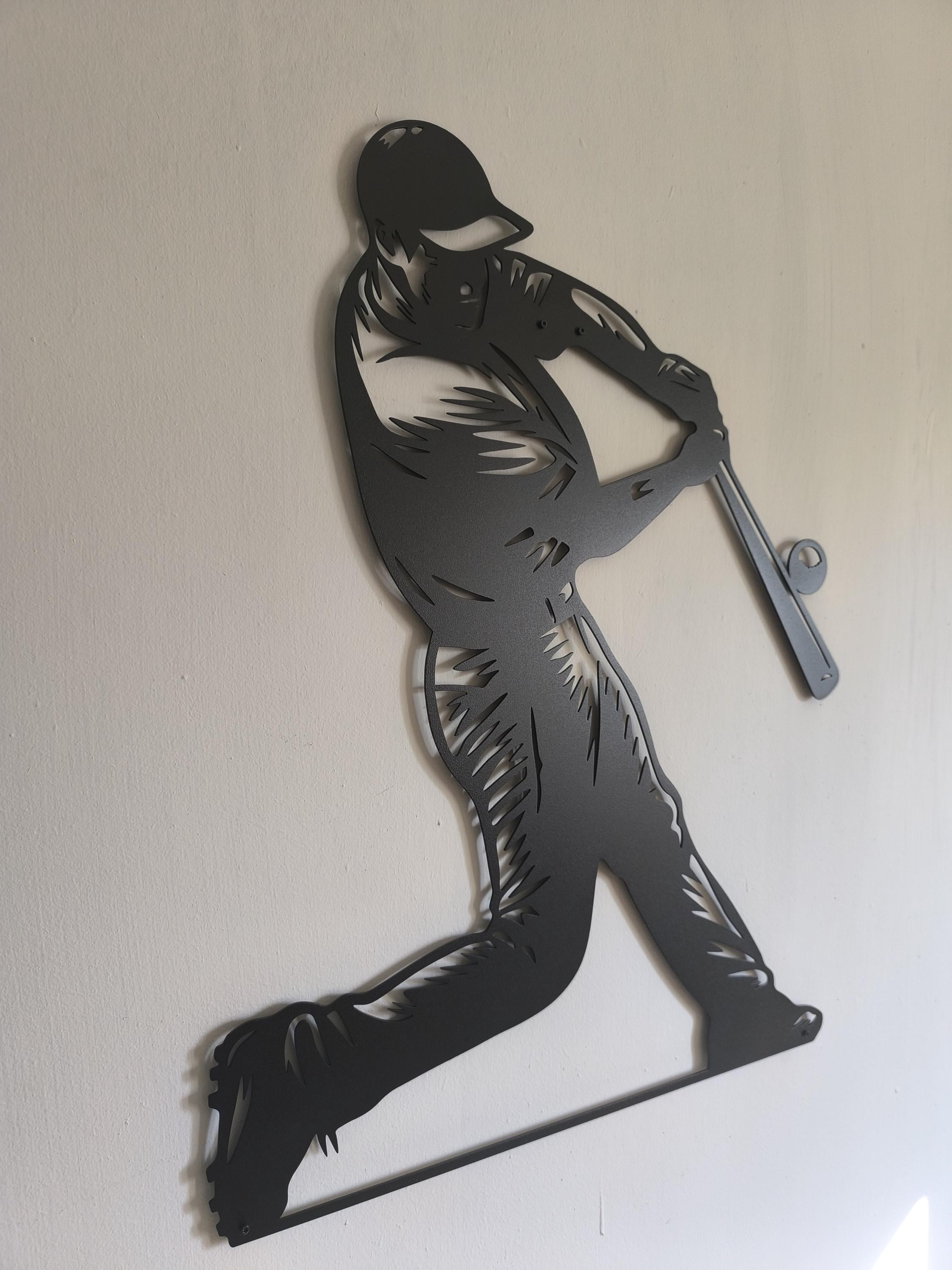 ๐ธHit a home run with your decor using this Custom Baseball Player Metal Wall Decor. This dynamic silhouette captures a baseball hitter mid-swing, creating a powerful, sporty accent for any room. The personalized element allows you to add a custom name, jersey number, or team name, making it the perfect personalized gift for players, coaches, or baseball enthusiasts. It's an instant upgrade for a bedroom, game room, man cave, or sports bar!