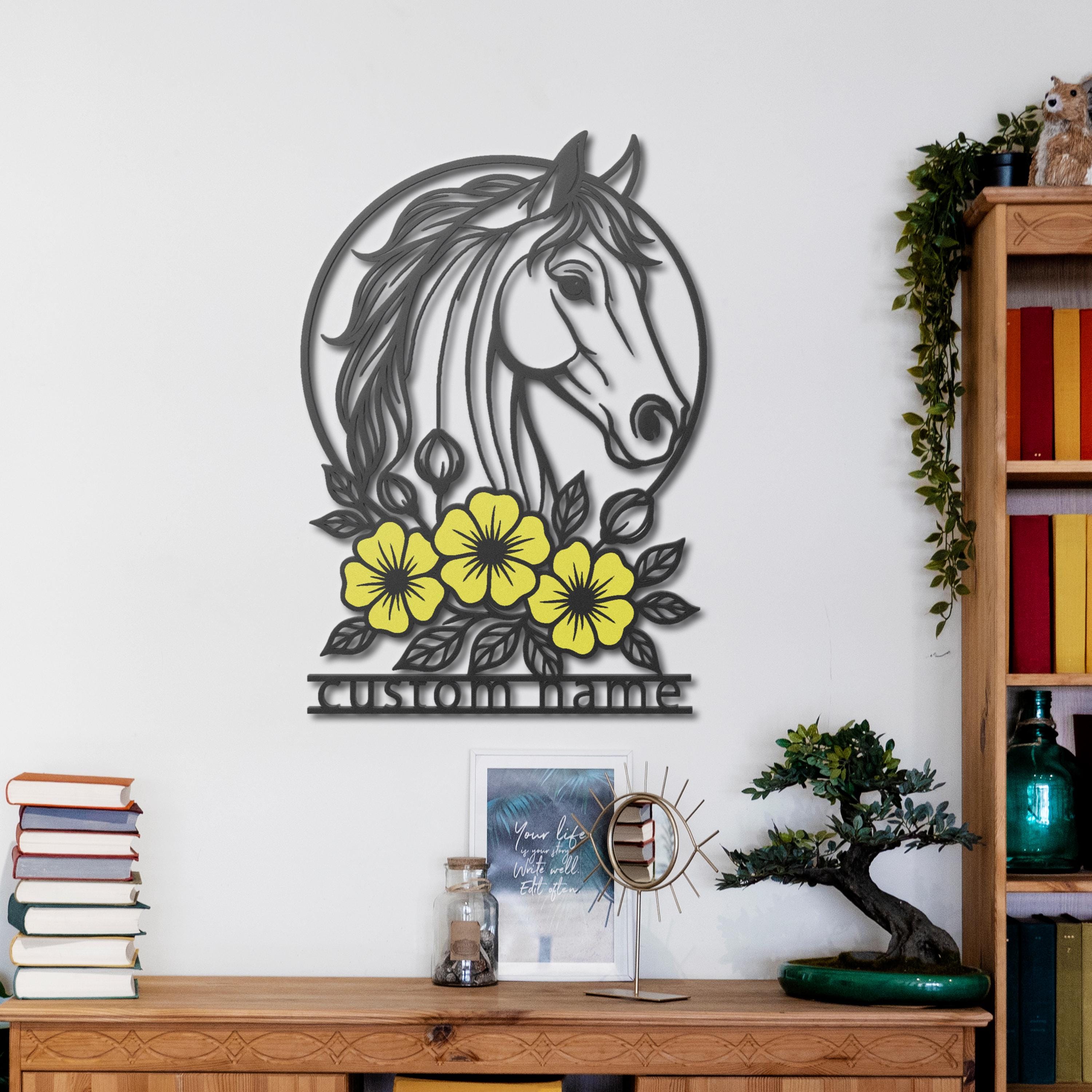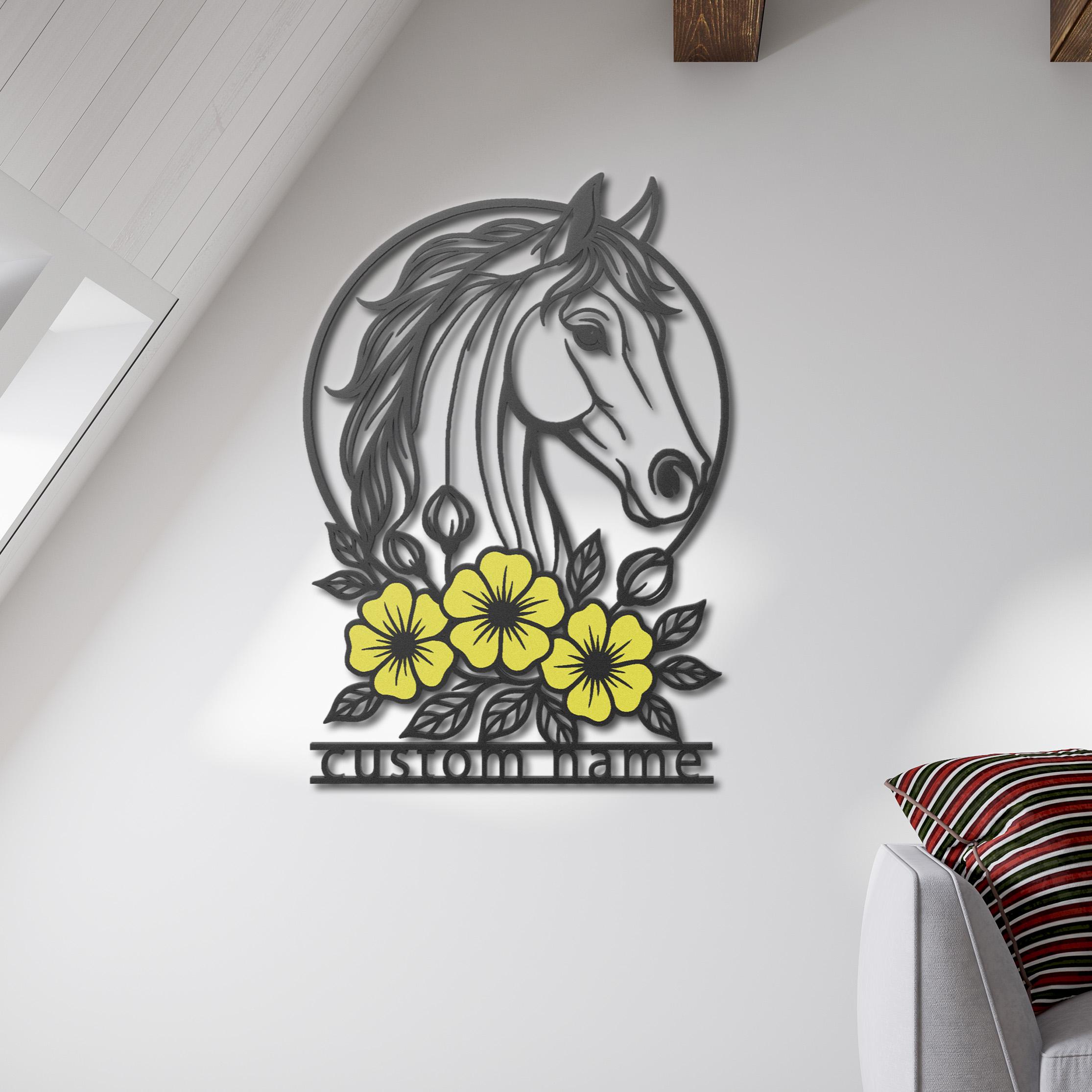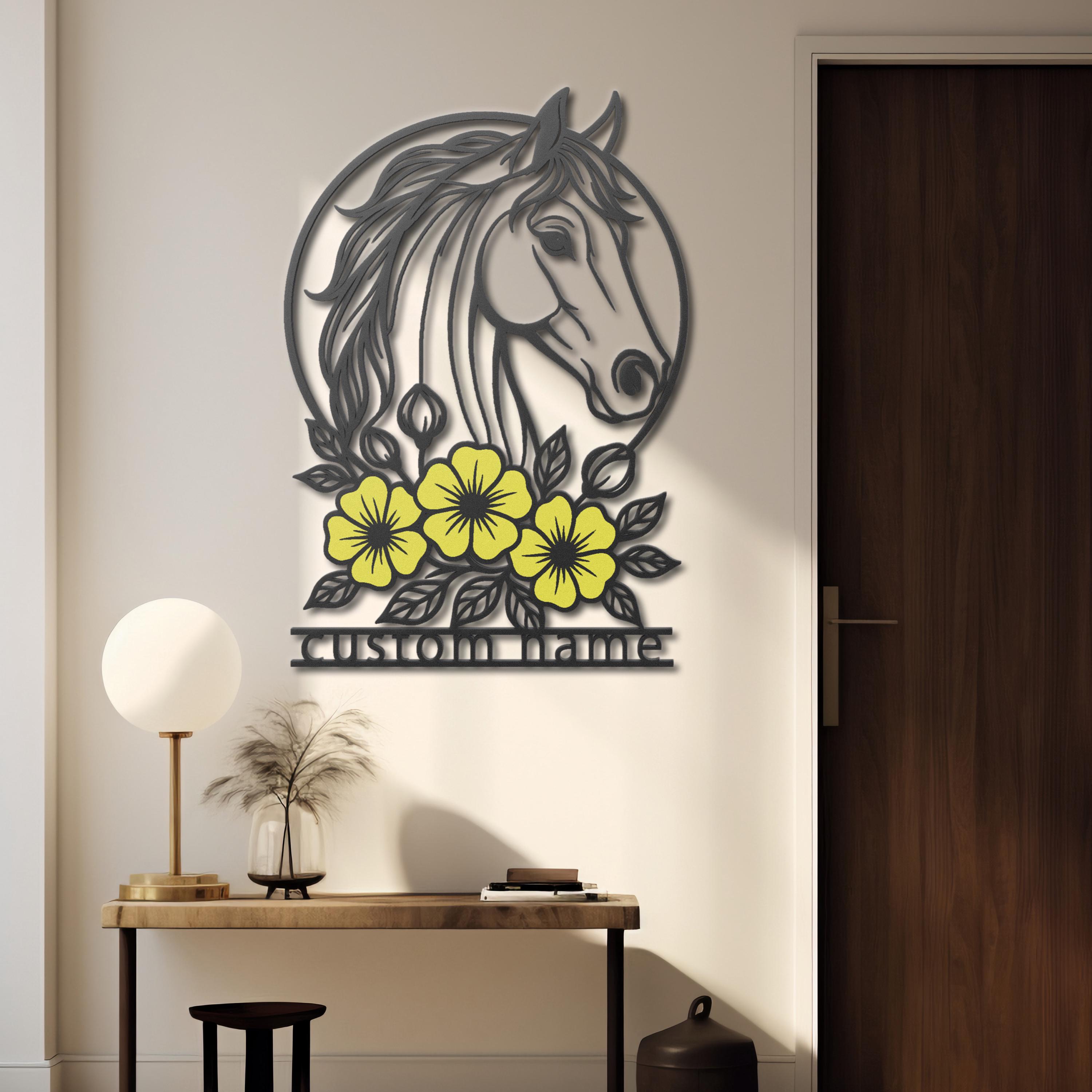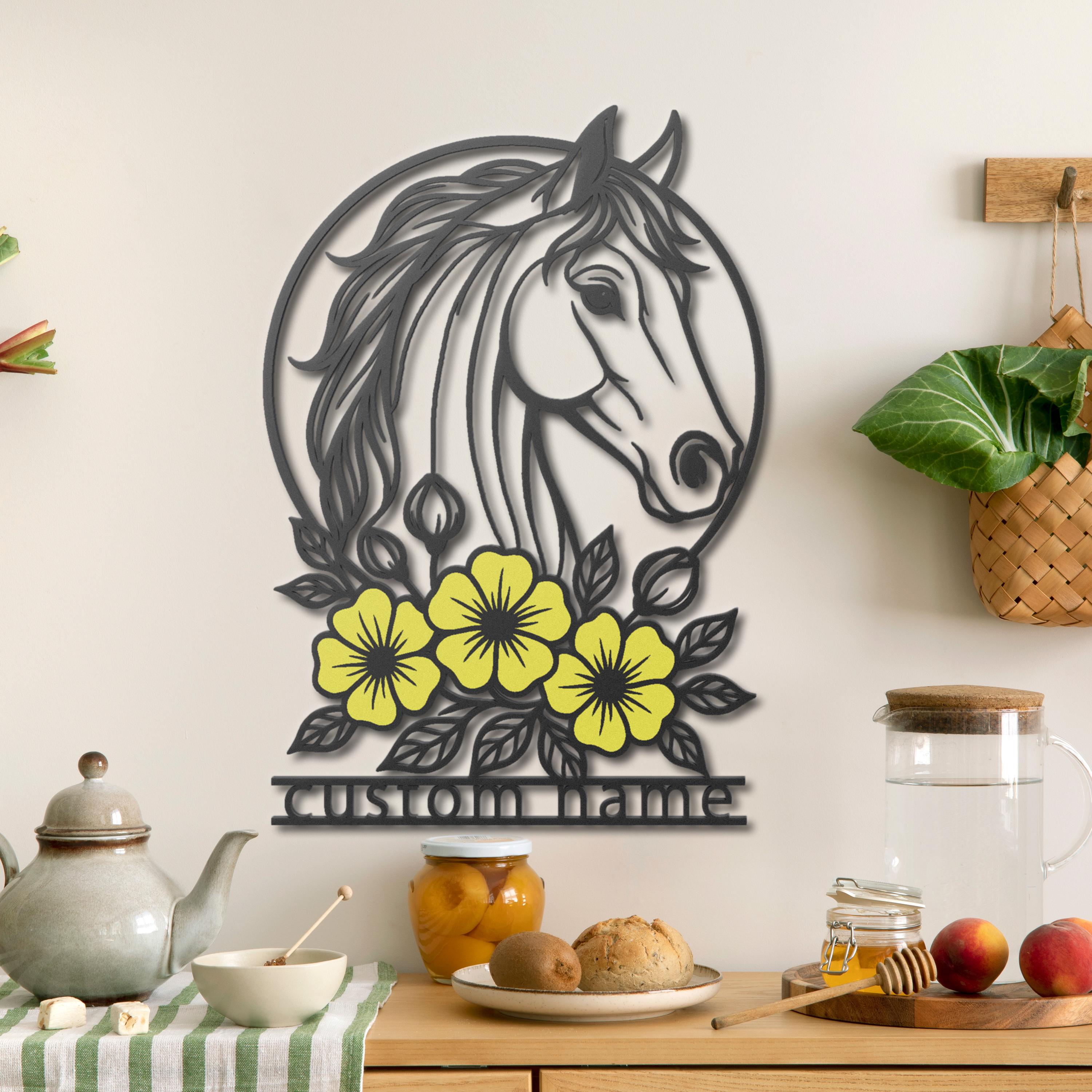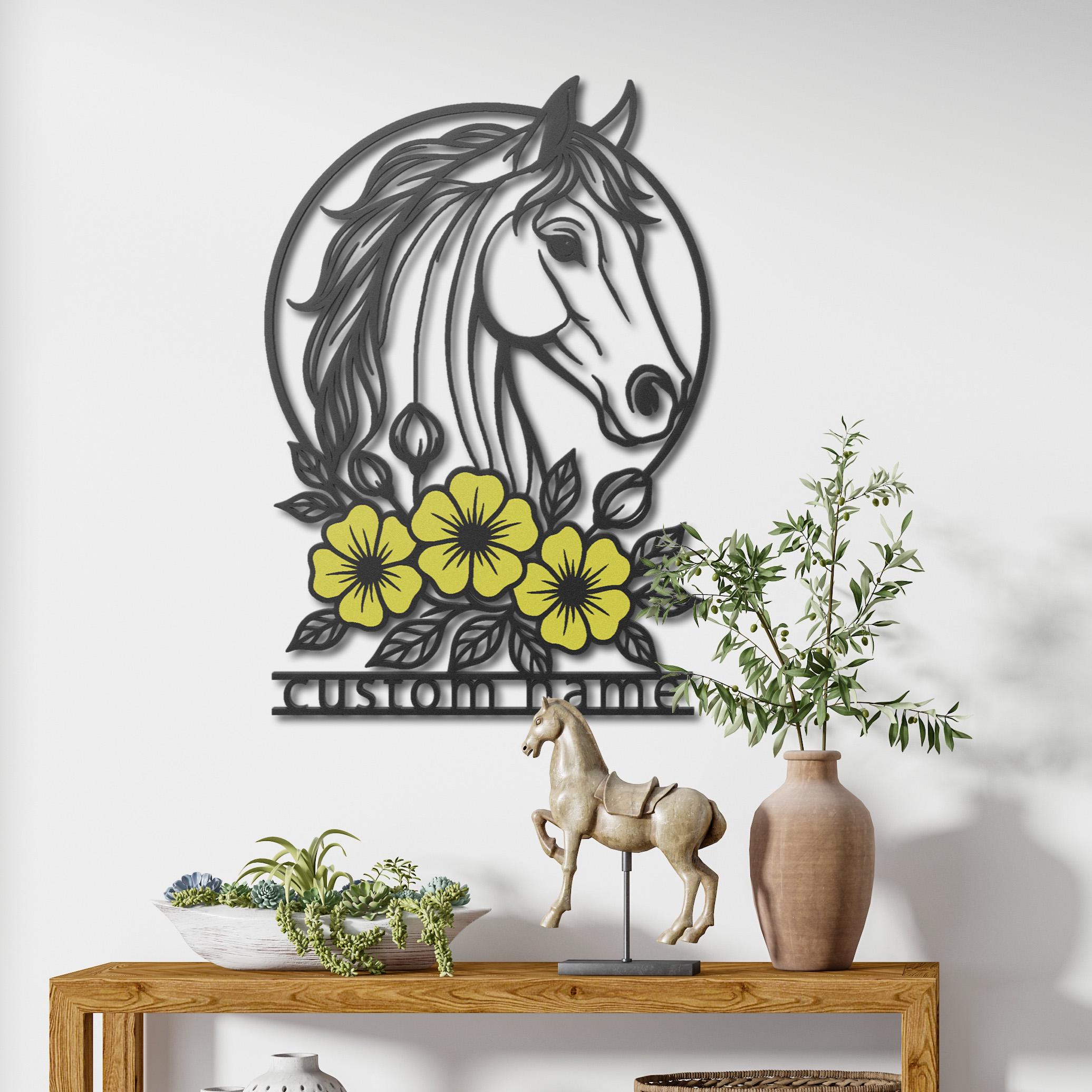 🔸Celebrate your love for horses with our elegant Personalized Horse Name Metal Sign. This beautiful piece features a detailed portrait of a majestic horse head framed by charming flowers, with a custom space below to engrave a name, stable name, or special word. It beautifully blends equestrian passion with rustic farmhouse charm.