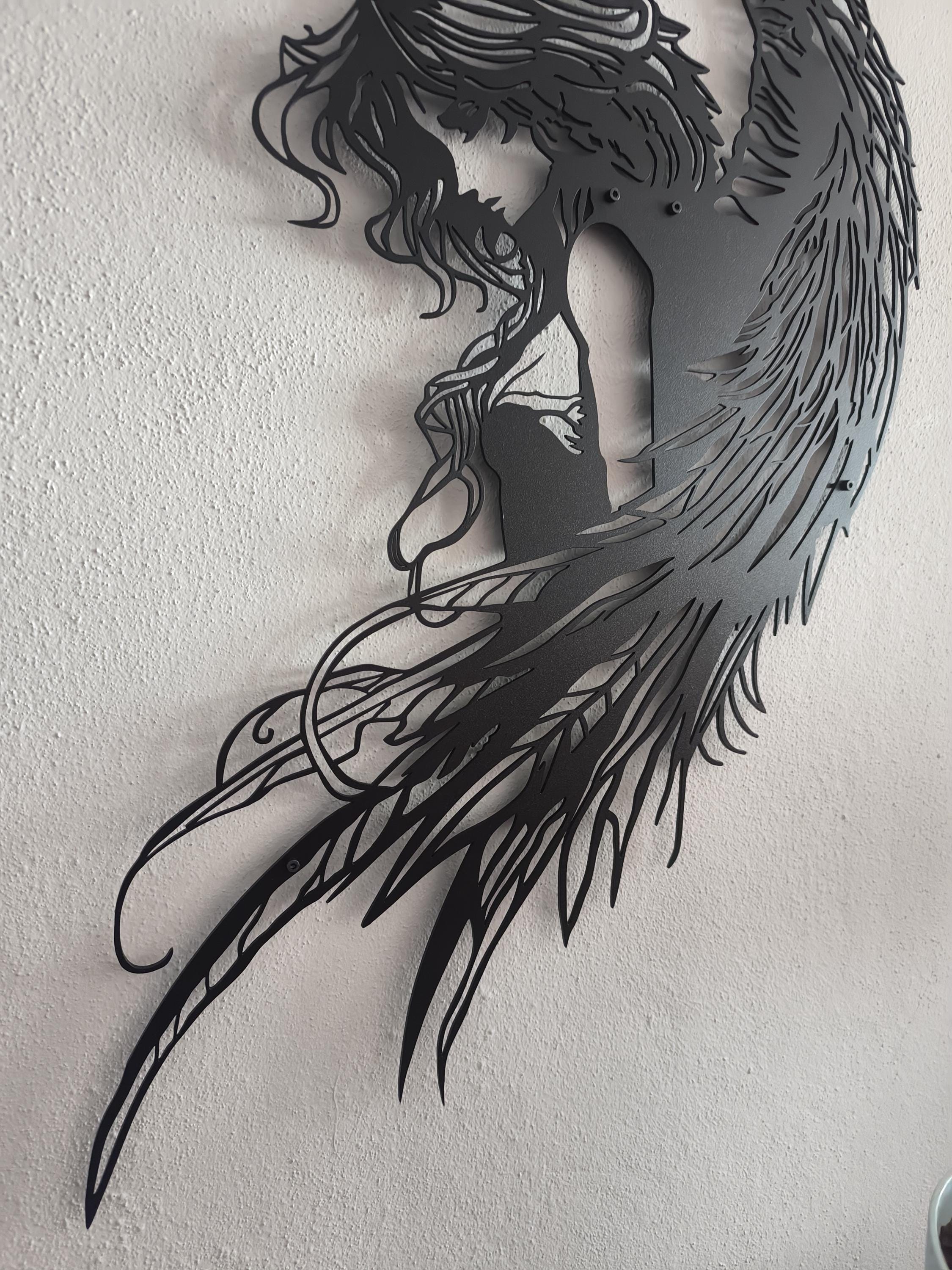 โ๏ธ Elegant Design Detail: Captures the soft curves of hair and the striking texture of the wings.