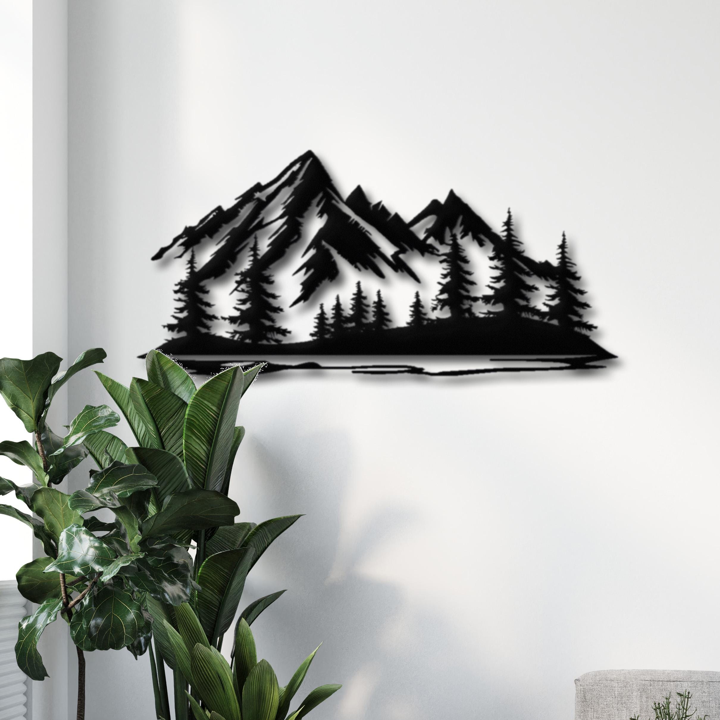 Bring the serene beauty of the wilderness indoors with this striking Mountain and Forest Metal Wall Art. Designed with clean, minimalist lines, this piece captures the majestic silhouette of a mountain range and a dense pine forest. It's the perfect statement piece for lovers of nature, modern design, and Scandinavian aesthetics.