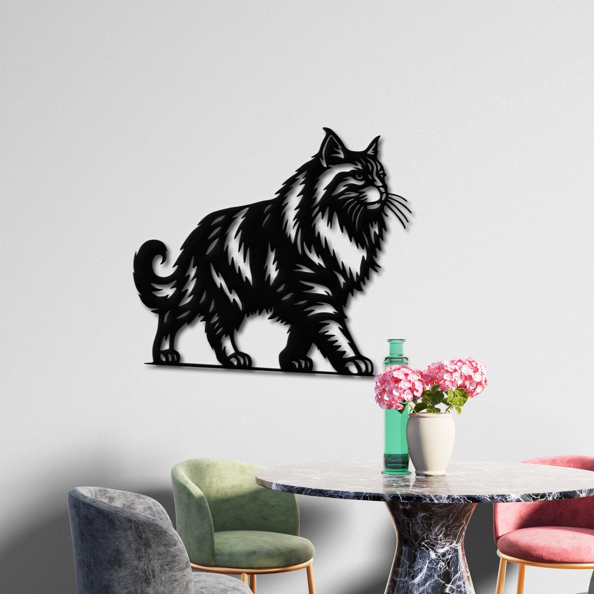 πΈ Celebrate the majestic presence of a long-haired feline with our Fluffy Cat Metal Wall Art. This beautifully detailed silhouette captures the rich fur, expressive gaze, and grand posture of a large breed cat, such as a Maine Coon or Norwegian Forest Cat. It is a sophisticated piece that pays tribute to the beloved family pet.
