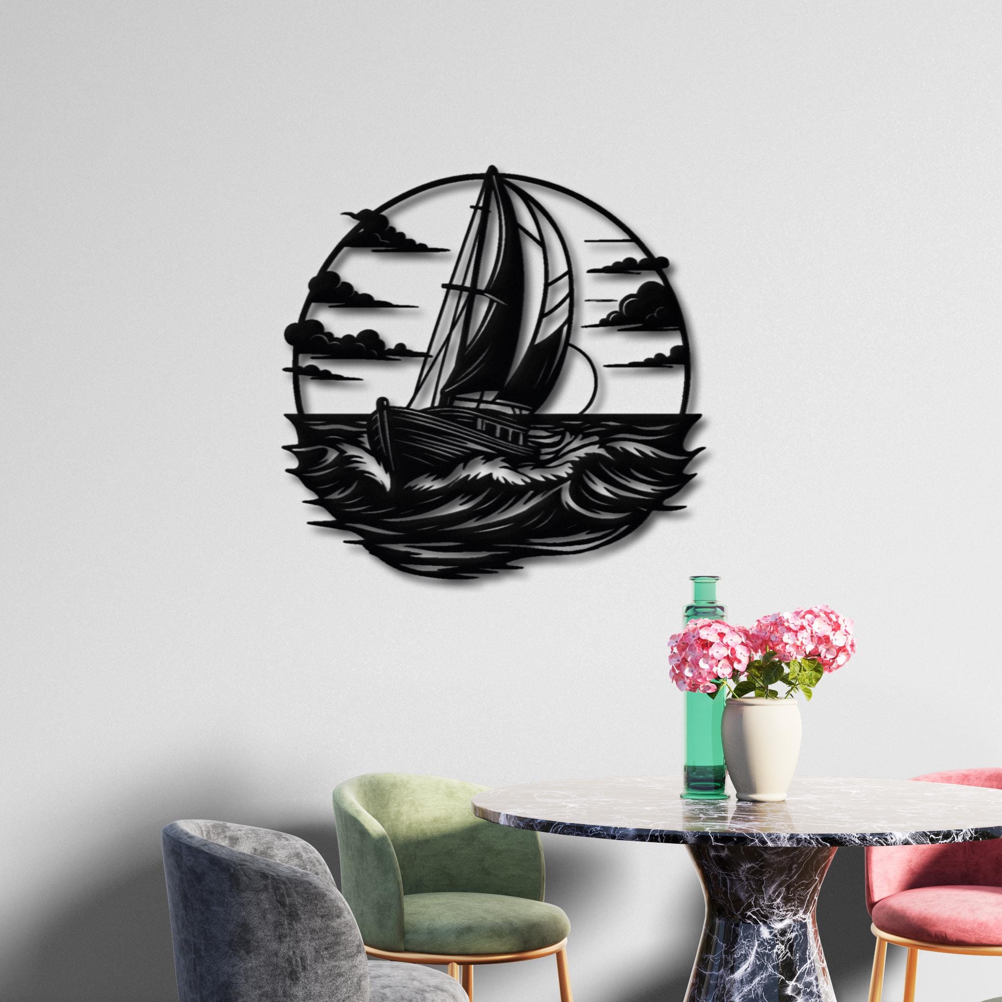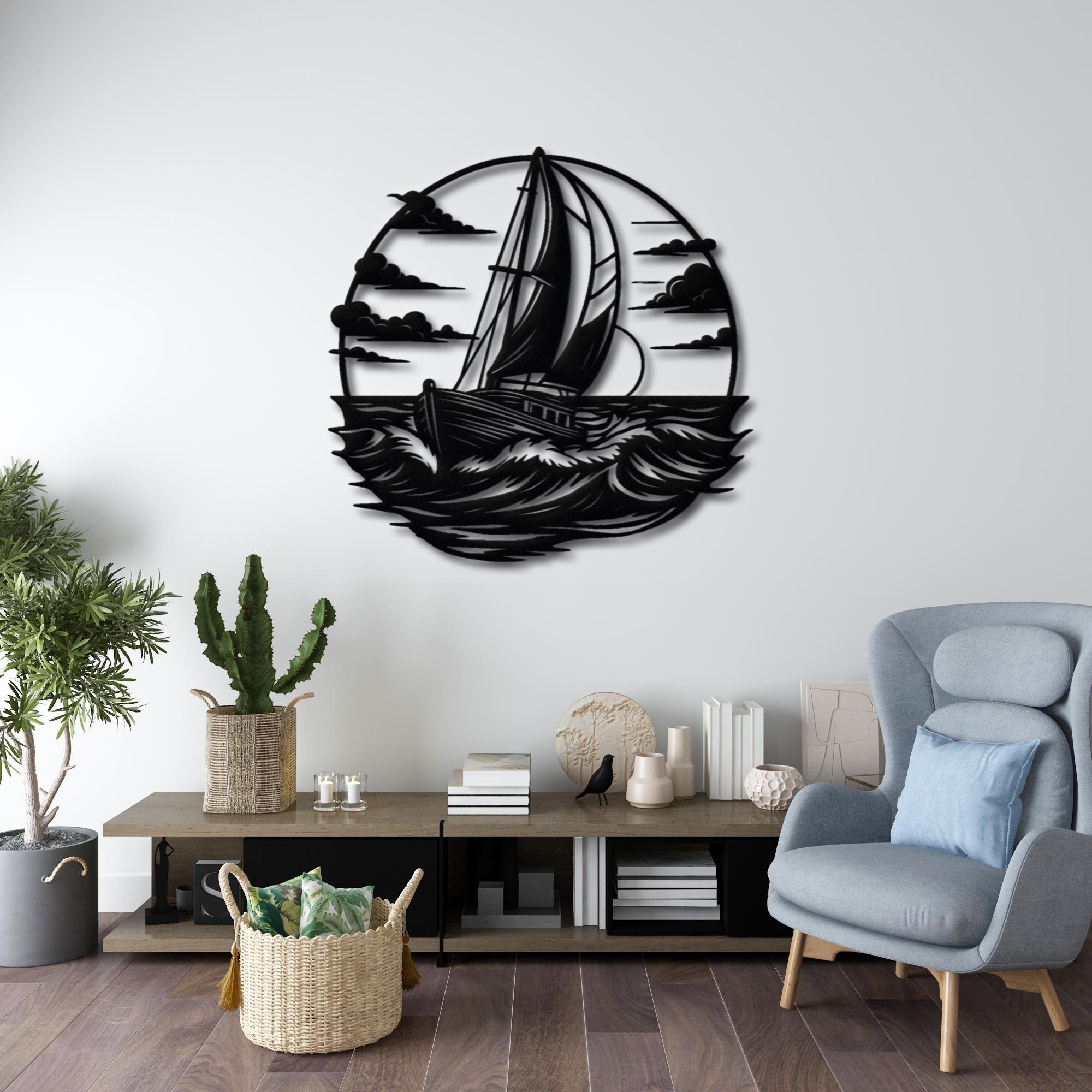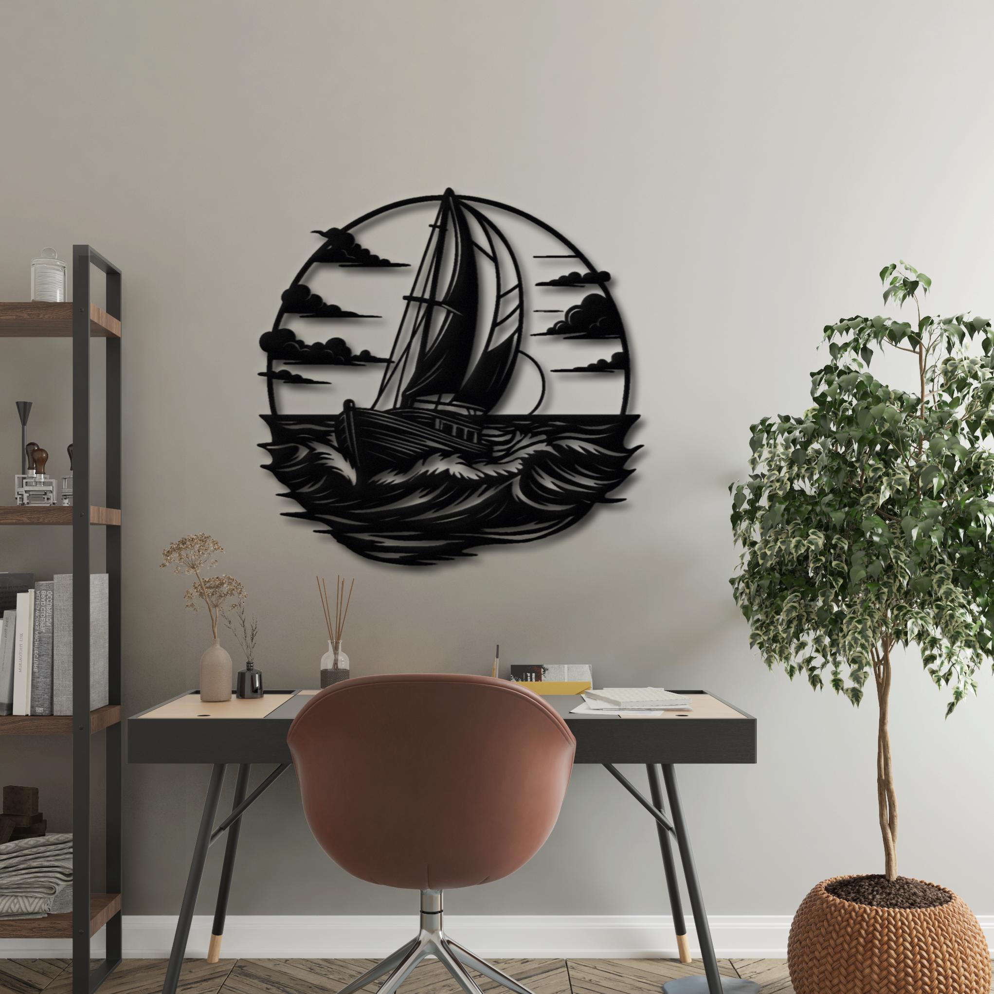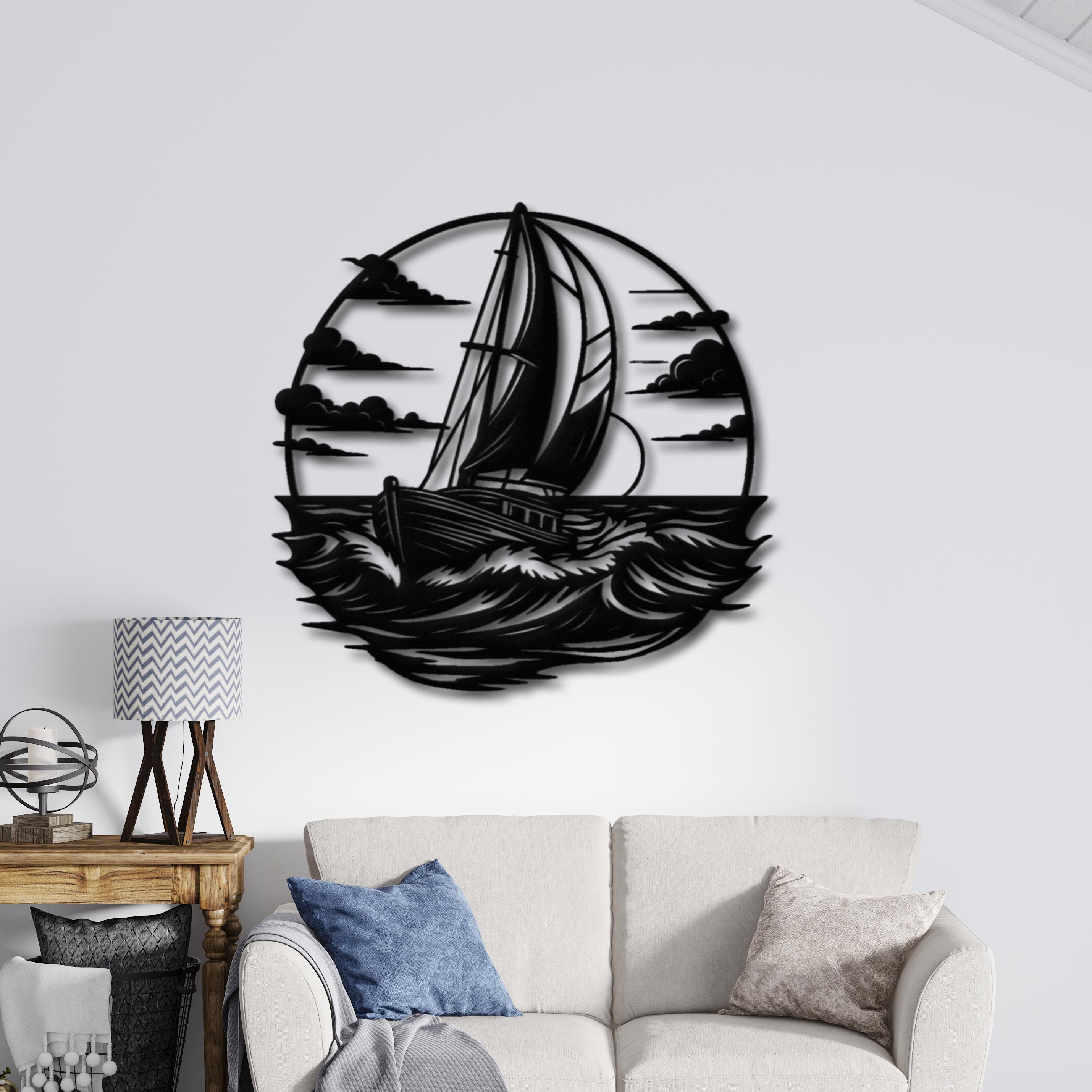 Bring the calm energy of the sea into your home with this elegant sailboat metal wall decor. Featuring a bold sailing ship cutting through ocean waves, this design is perfect for anyone who loves the ocean, sailing, and modern coastal interiors.This piece looks stunning in living rooms, entryways, offices, beach houses, lake houses, or even as a unique gift for a sailing lover. ππ‘