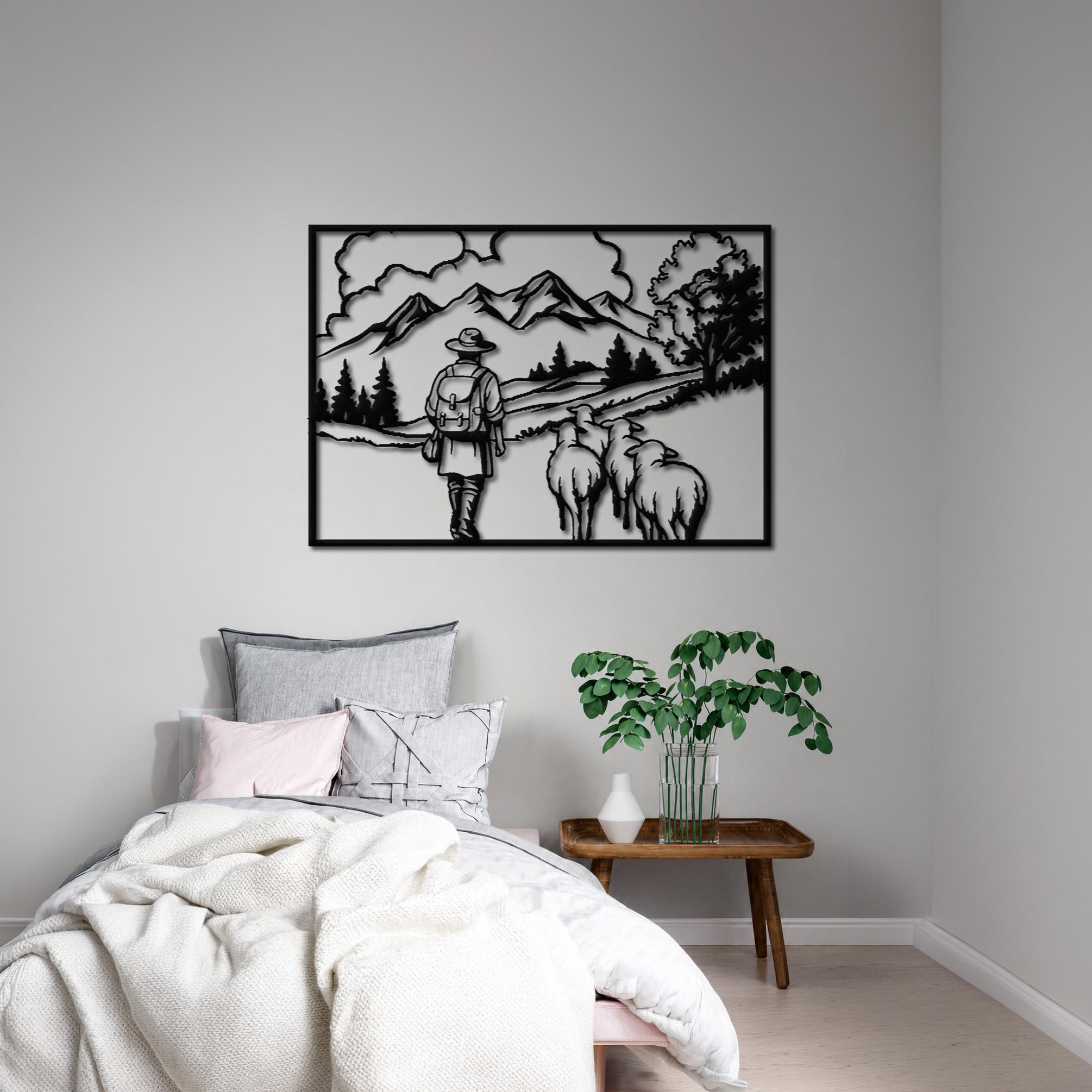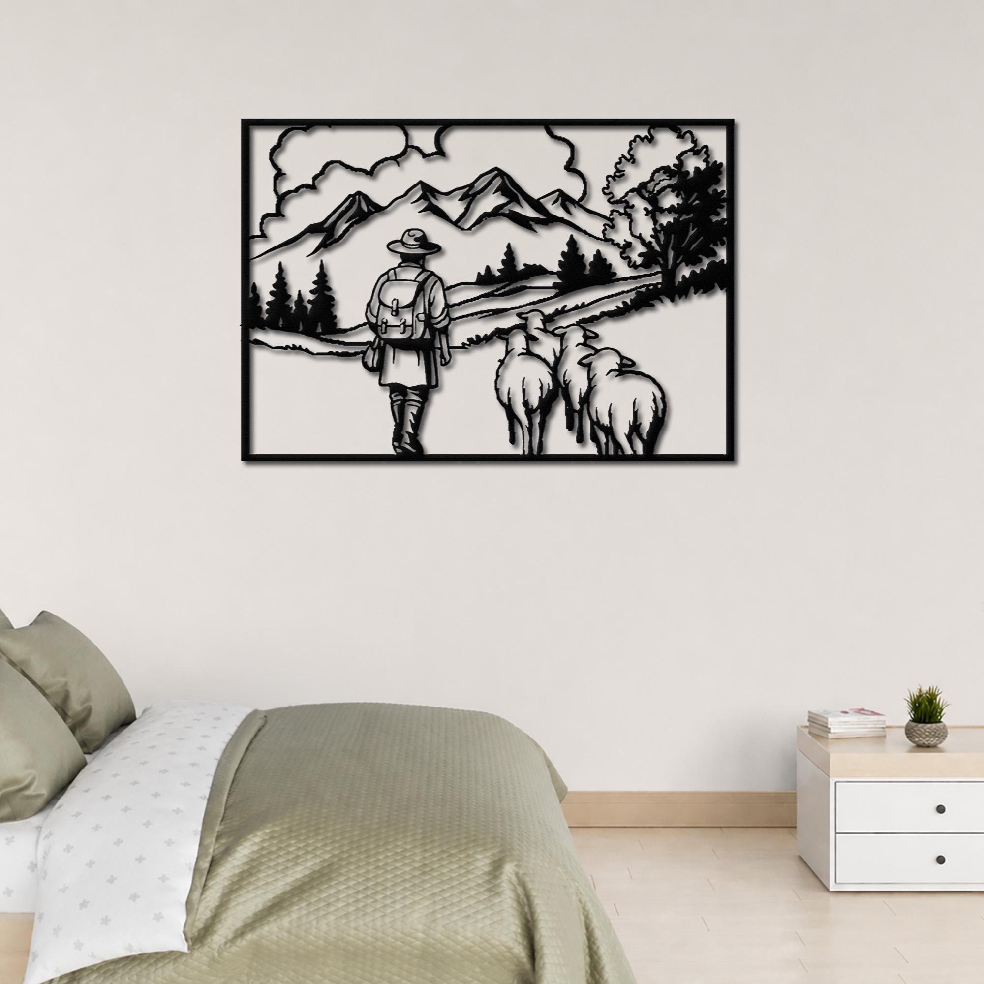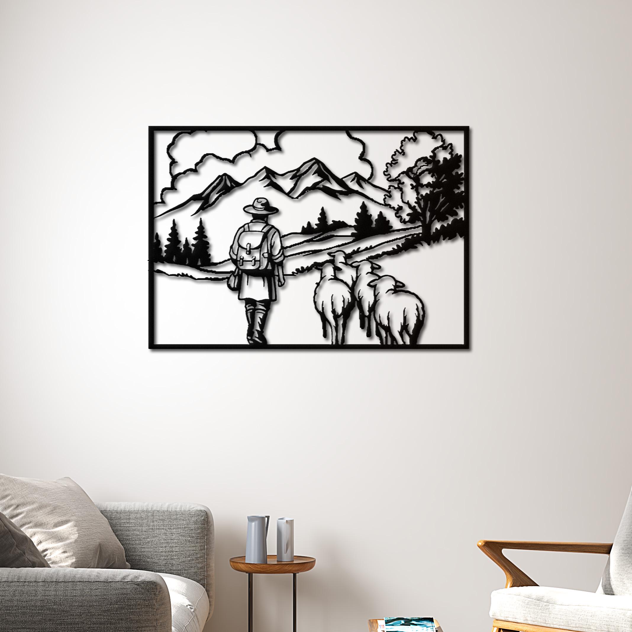 πΈ This beautifully detailed metal wall art captures a peaceful countryside scene of a shepherd walking with sheep through a scenic mountain landscape. The minimalist silhouette design evokes calmness, simplicity, and a deep connection to nature, making it a perfect statement piece for rustic and farmhouse interiors.